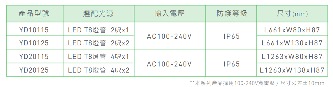 防水燈具  防水防塵設計 橡膠材質密封設計、搭配不鏽鋼搭扣,確保防濕防塵,密閉性優。 嚴選材質 有效抗氣候及耐衝擊材質,確保燈具堅固耐用,壽命長久。 品質保障 搭配符合CNS國家標準之光源,用電最省、效率更高。 全電壓 ..